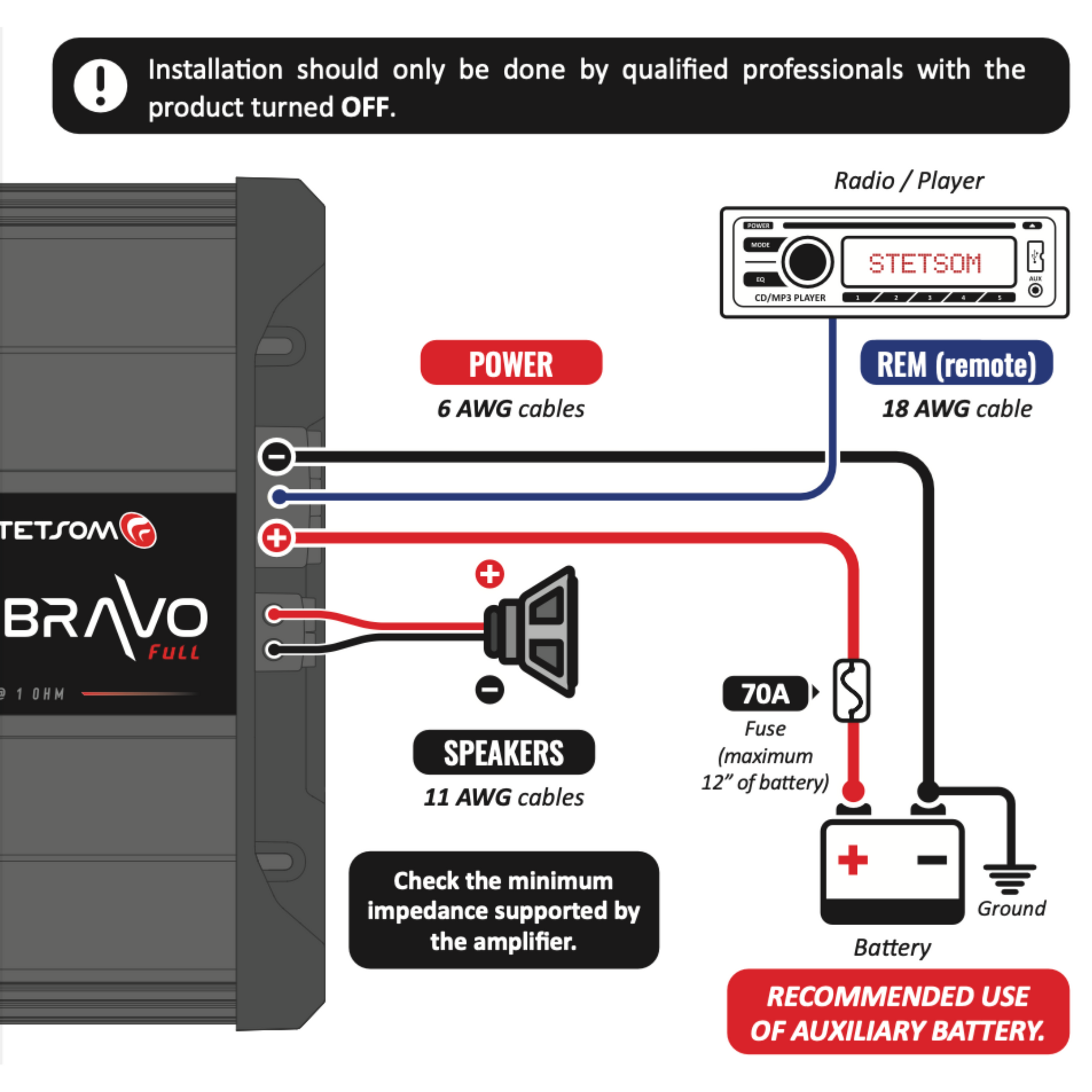 Stetsom BRAVO FULL 1.2k Digital Full-Range Amplifier Mono 1 Channel Class D 1200 Watts RMS